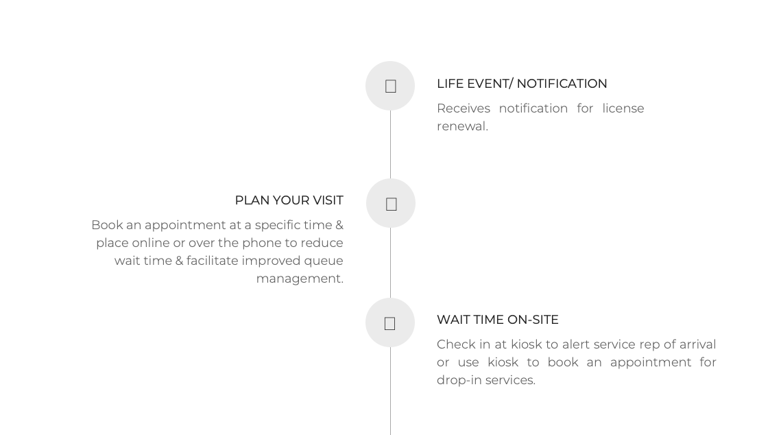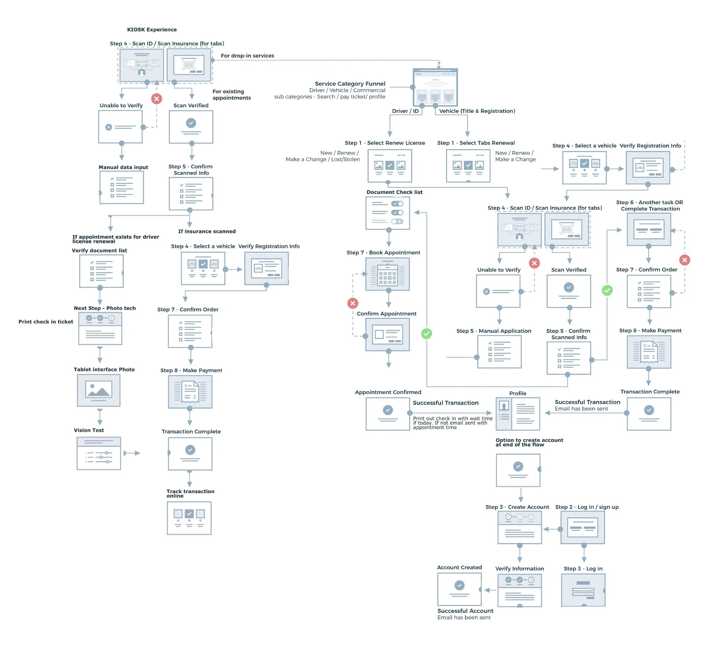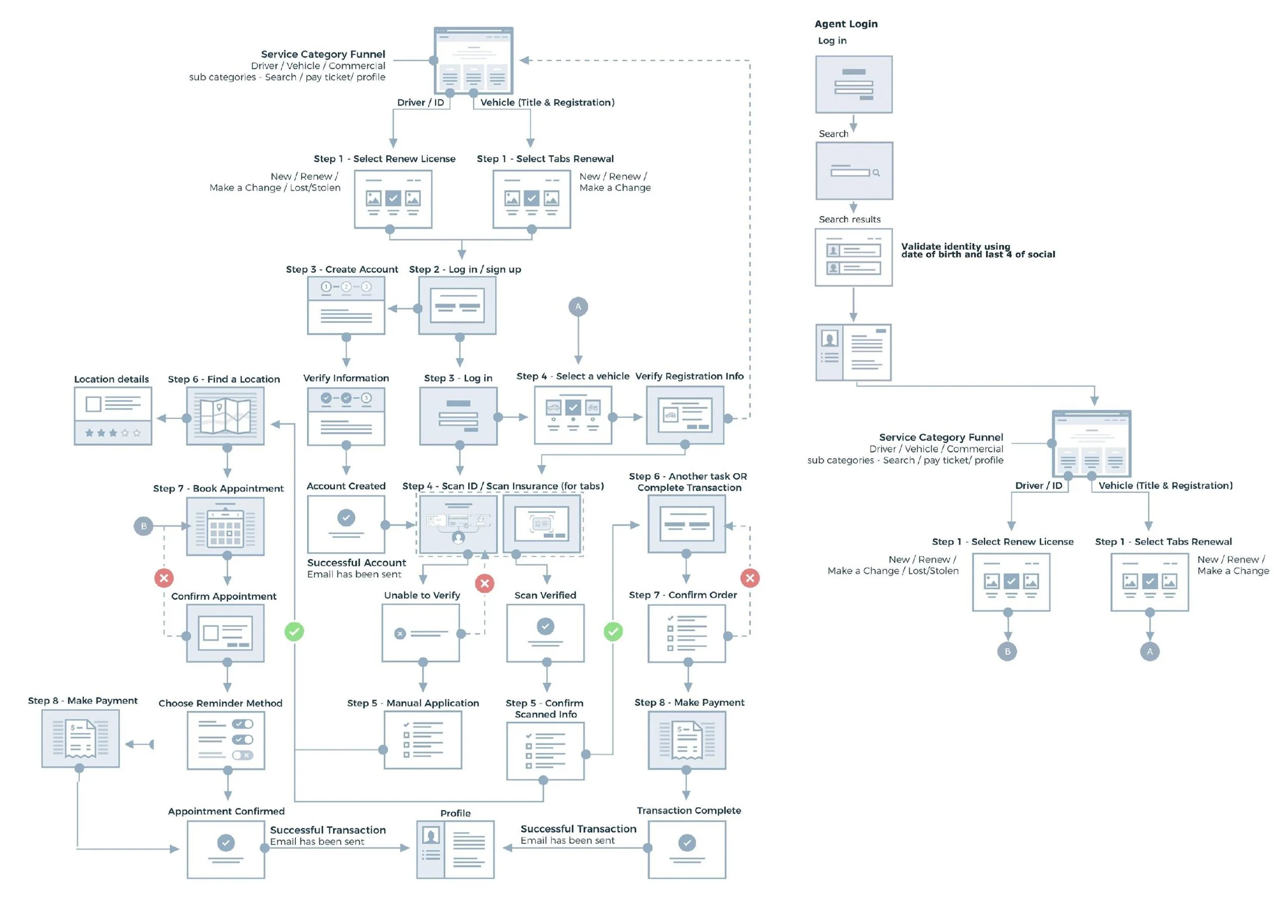 DMV interactions are typically plagued with anxiety and apprehension for both citizens and employees. The goal is to transform an otherwise dreaded transaction into a supportive journey across all touch points.