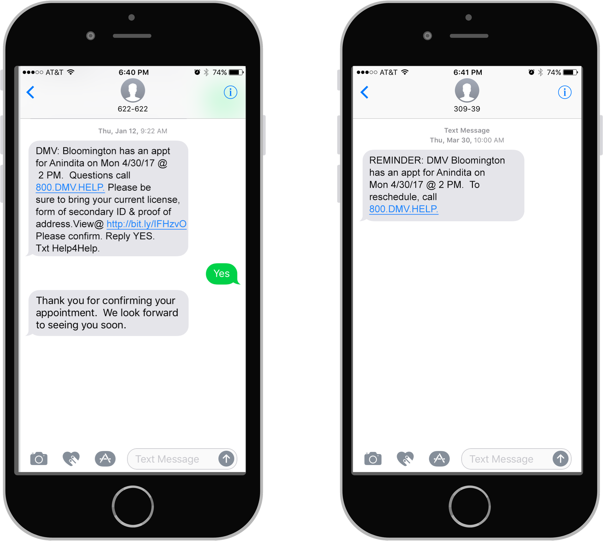 Receive text confirmation and reminders on upcoming appointments with supportive information on documentation needed to allow for early communication and failure prevention.
